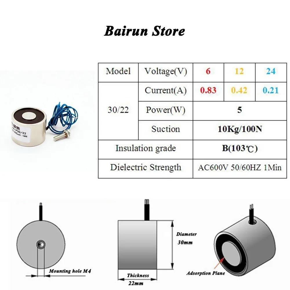 Небольшой электромагнитный подъемник 3022 постоянного тока 12 В, 10 кг 100 Н, соленоид, мощная присоска, Электрический магнит под заказ