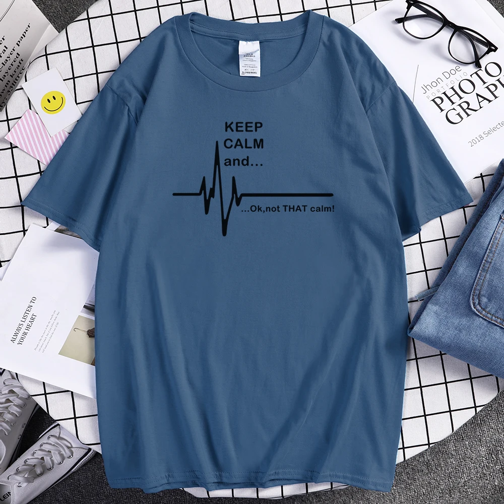 Мужская футболка с надписью Keep Calm and... Not That Calm Funny EKG Heart Rate, качественная футболка, лето 2019