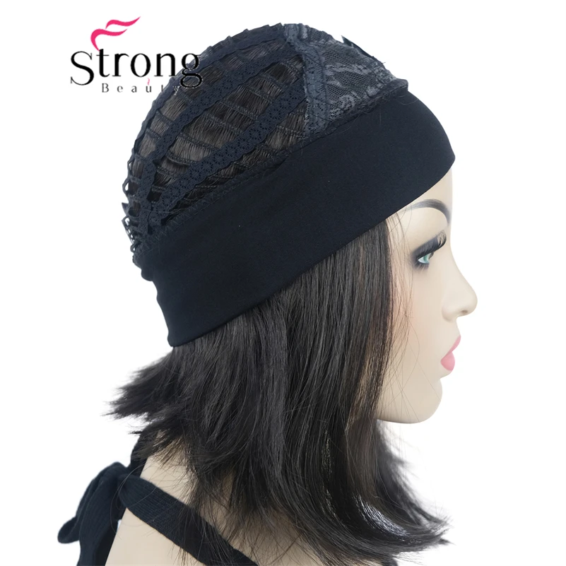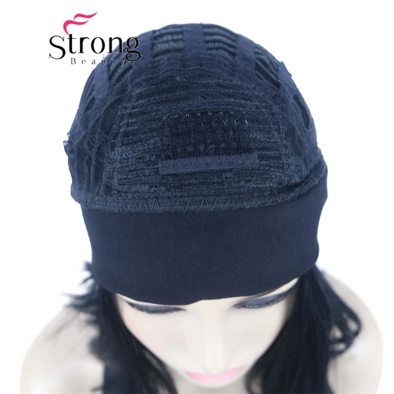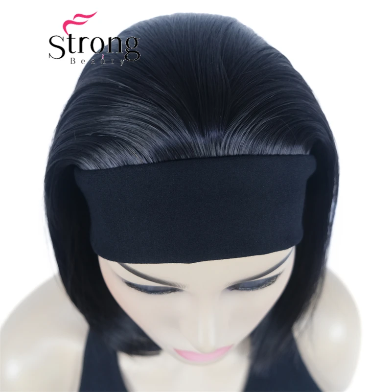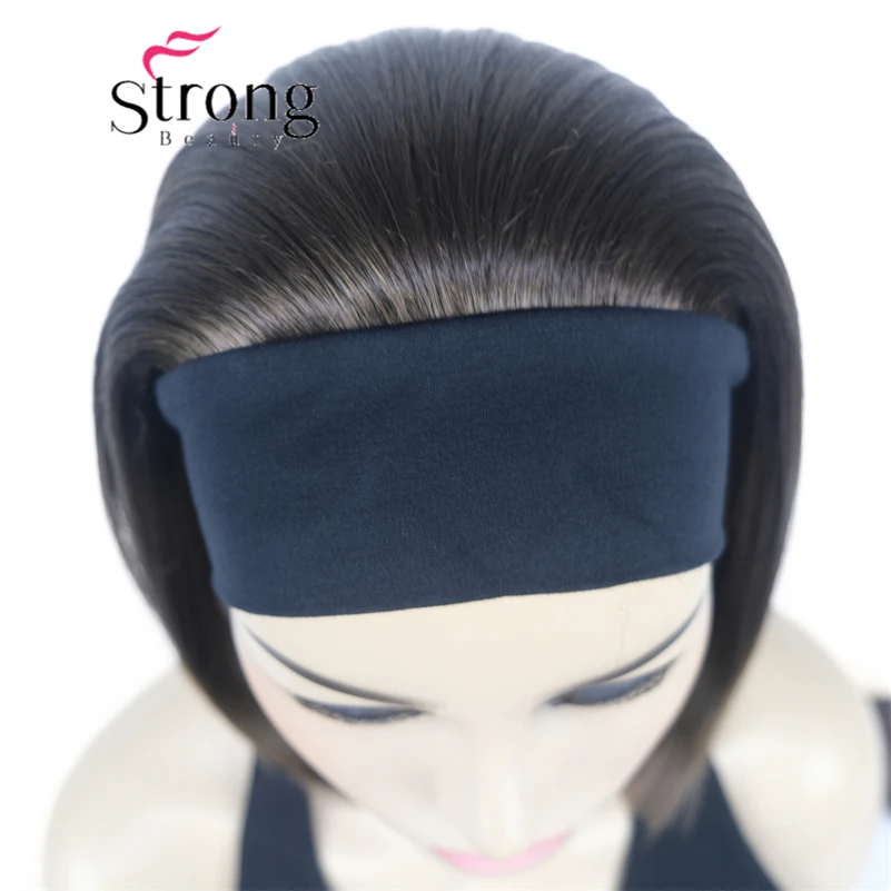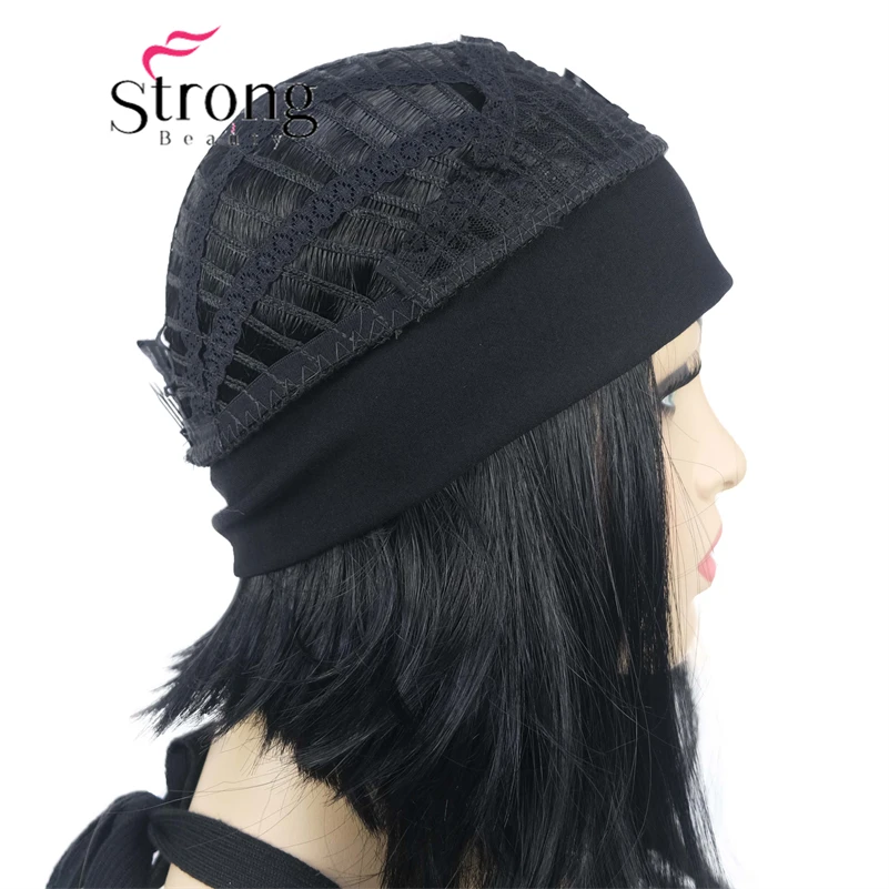 Повязка на голову парик, черная повязка на голову крепится к классической шапочке 3/4.