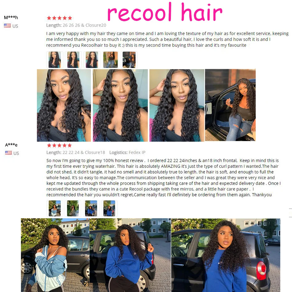 Бразильские волнистые пучки волос Recool с закрытием HD прозрачные кружевные фронтальные пучки с пучками человеческих волос с фронтальным