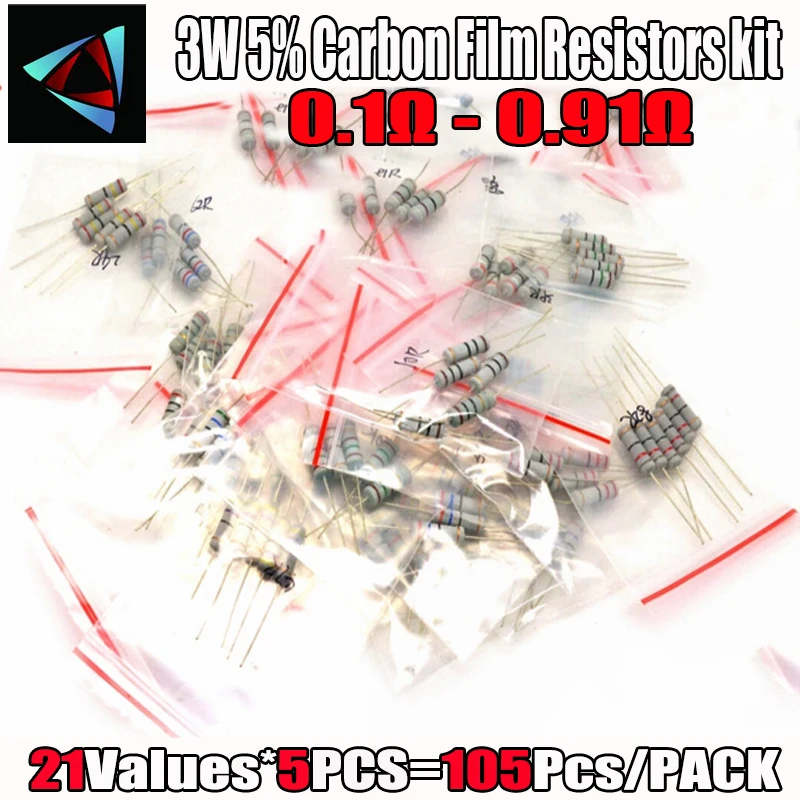 105 шт. 3 Вт 5% 0,1 0,91 Ом, 21 значение * 5 шт., карбоновые пленочные резисторы, комплект пленки из оксида металла