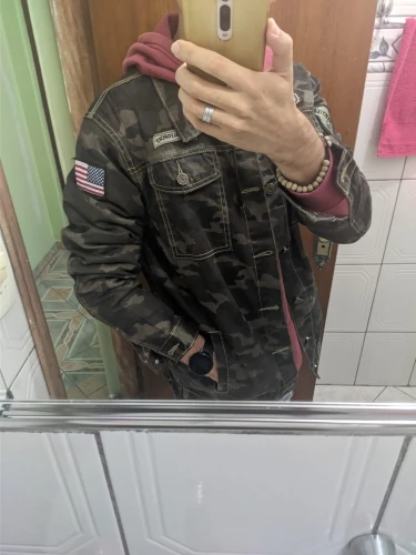 Рубашка мужская джинсовая камуфляжная, в стиле милитари