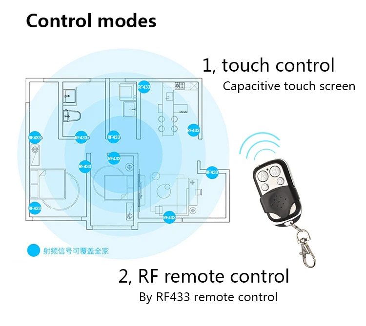 С сенсорной функцией и функцией дистанционного управления 433 МГц, он оснащен пультом дистанционного управления.