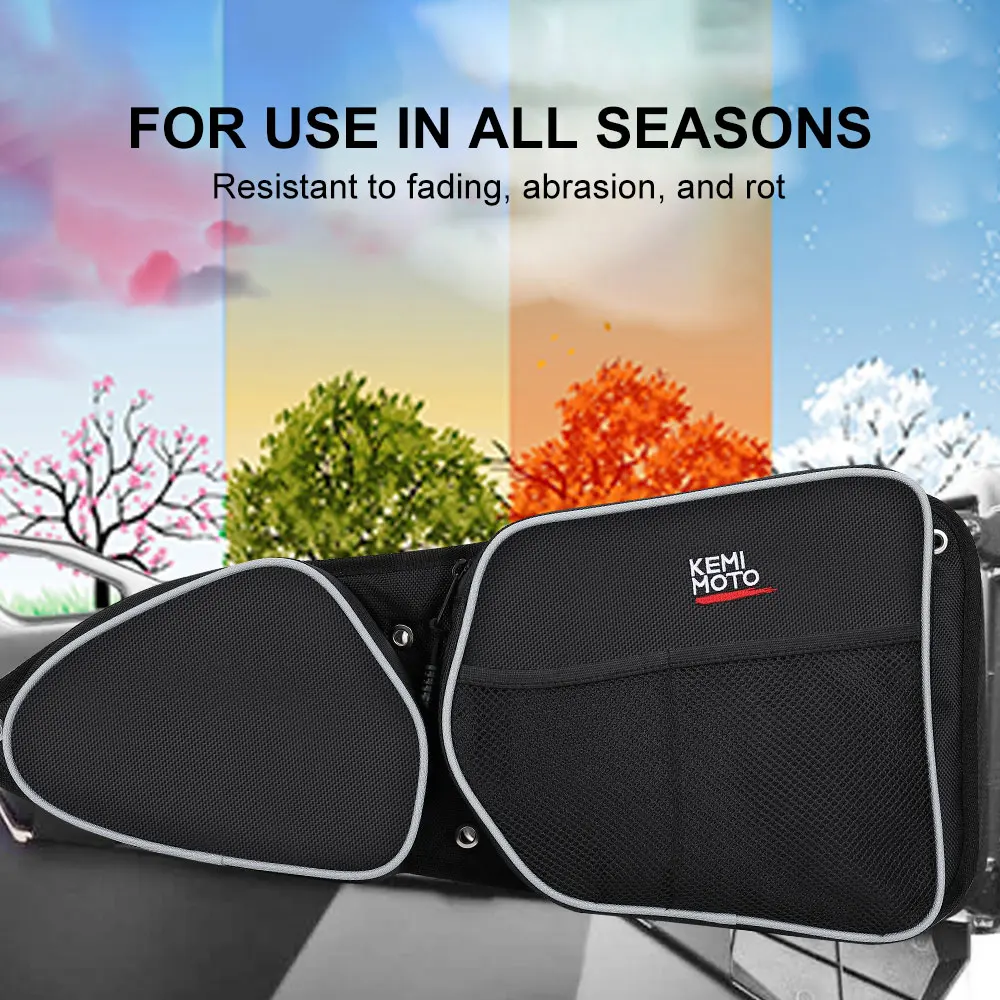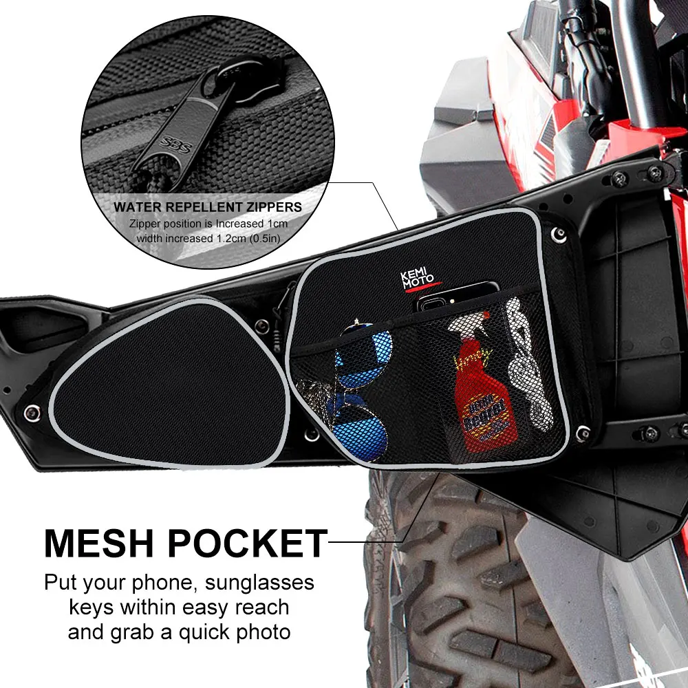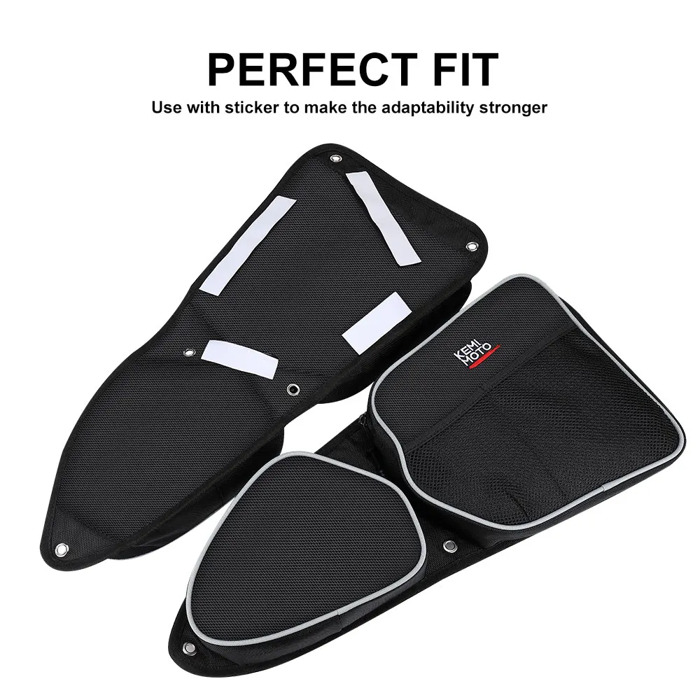 【 1680D fabric】-мы использовали полиэфирный материал 1680D, чтобы гарантировать, что ваша новая дверная сумка выдержит все, что вы пропустите. 1680D-прочная и долговечная армированная ткань.[Наколенник из губчатого материала]-наколенник толстый и удобный для защиты ваших коленей, и эта сумка добавляет места для вашего UTV.[Материал]-мы используем пвх-материалы, чтобы сумка и водоотталкивающие молнии были достаточно прочными. Эти дверные сумки являются водонепроницаемыми, они не могут быть полностью водонепроницаемыми.【 100% удовлетворительная гарантия 】-всегда предлагаем лучшее обслуживание для наших клиентов. Если у вас возникли проблемы с боковыми дверцами, KEMiMOTO поможет вам справиться с этим.