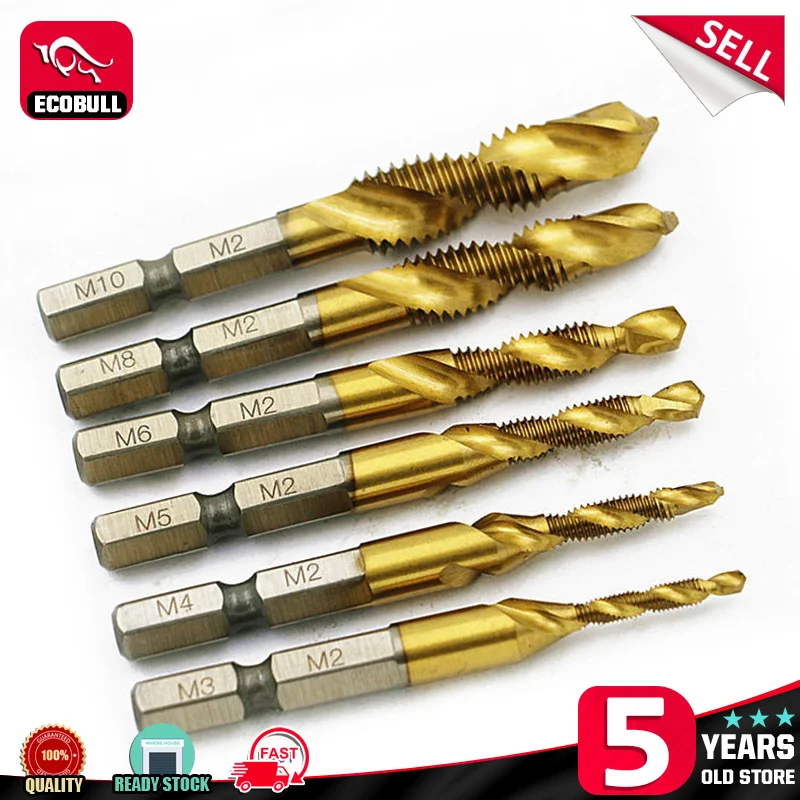 6 шт. 1/4 Hss шестигранный хвостовик комбинированный Зенковка сверло винт кран машина ручные краны Титан M3 M4 M5 M6 M8 M10