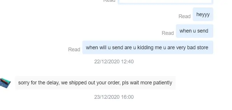 Продавец не отправлял товар в течении месяца,при этом всё ссылался то на плохо сделанный товар с фабрики,то на плохую работу логистики,то вообще отправлял прошлогодние номера треков давно полученные клиентами.Не советую связываться с этим продавцом обманщиком.К чести администрации алиэкспресс деньги после открытия спора вернули быстро.