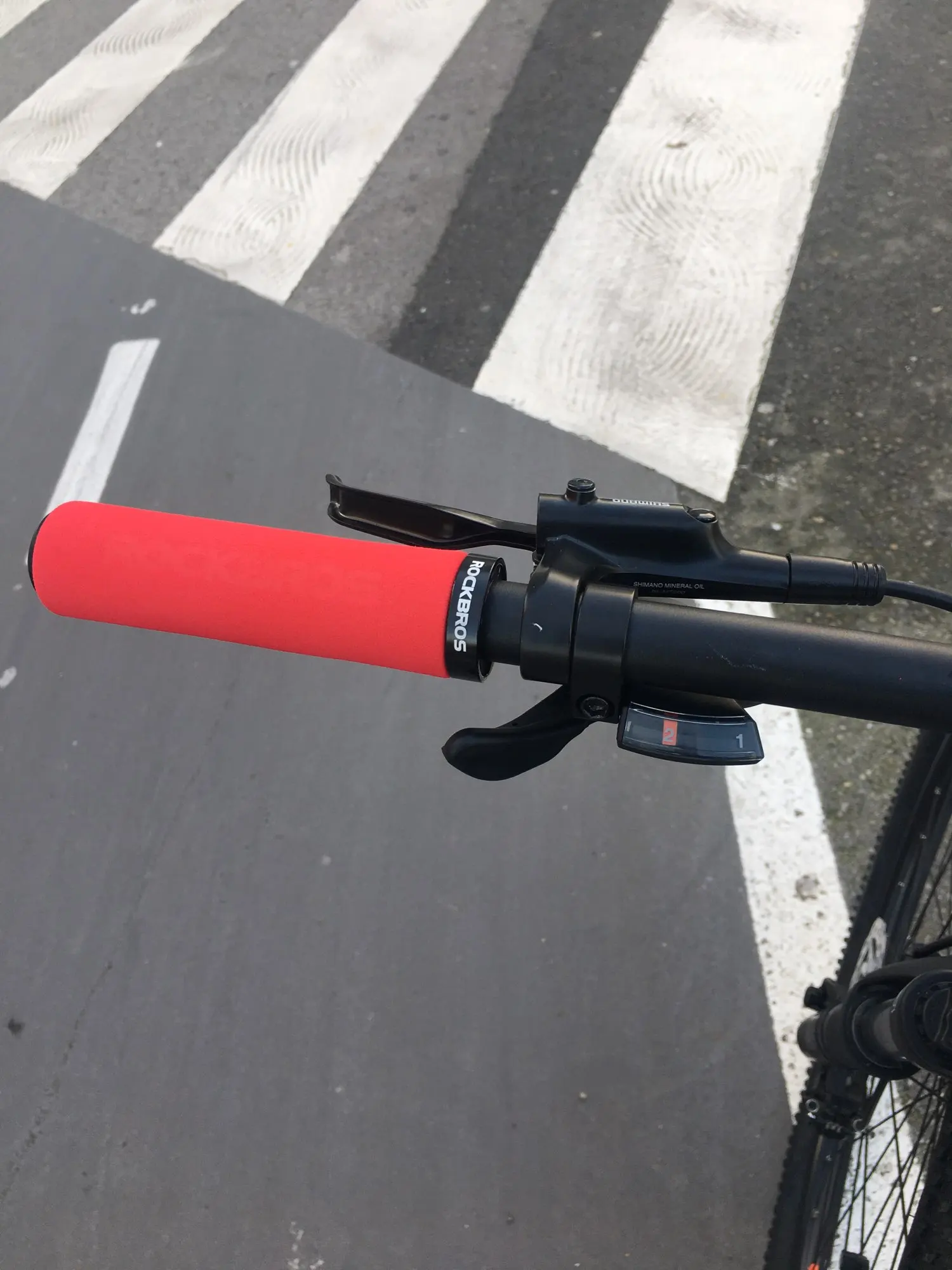 В целом неплохие грипсы, но при катании без перчаток могут натирать, и болты на хомутах уж совсем мягкие, при затяжке сорвал оба, надеюсь, в ближайшее время не придётся их откручивать. Первый краш-тест был пройден успешно И да, я знаю что установил грипсы не той стороной, но если их перевернуть, то рычажок локаута будет упираться в хомут из-за чего не будет фиксироваться