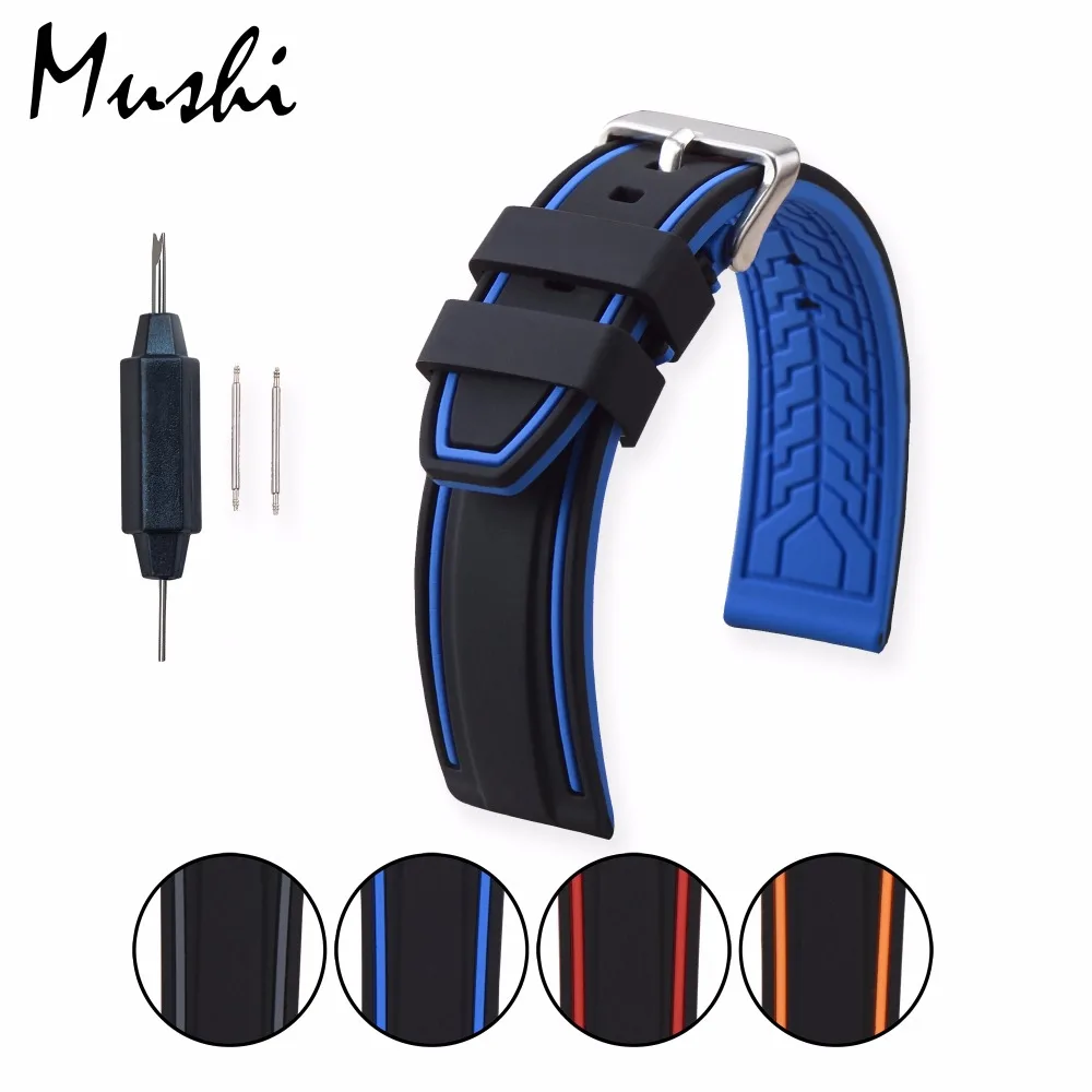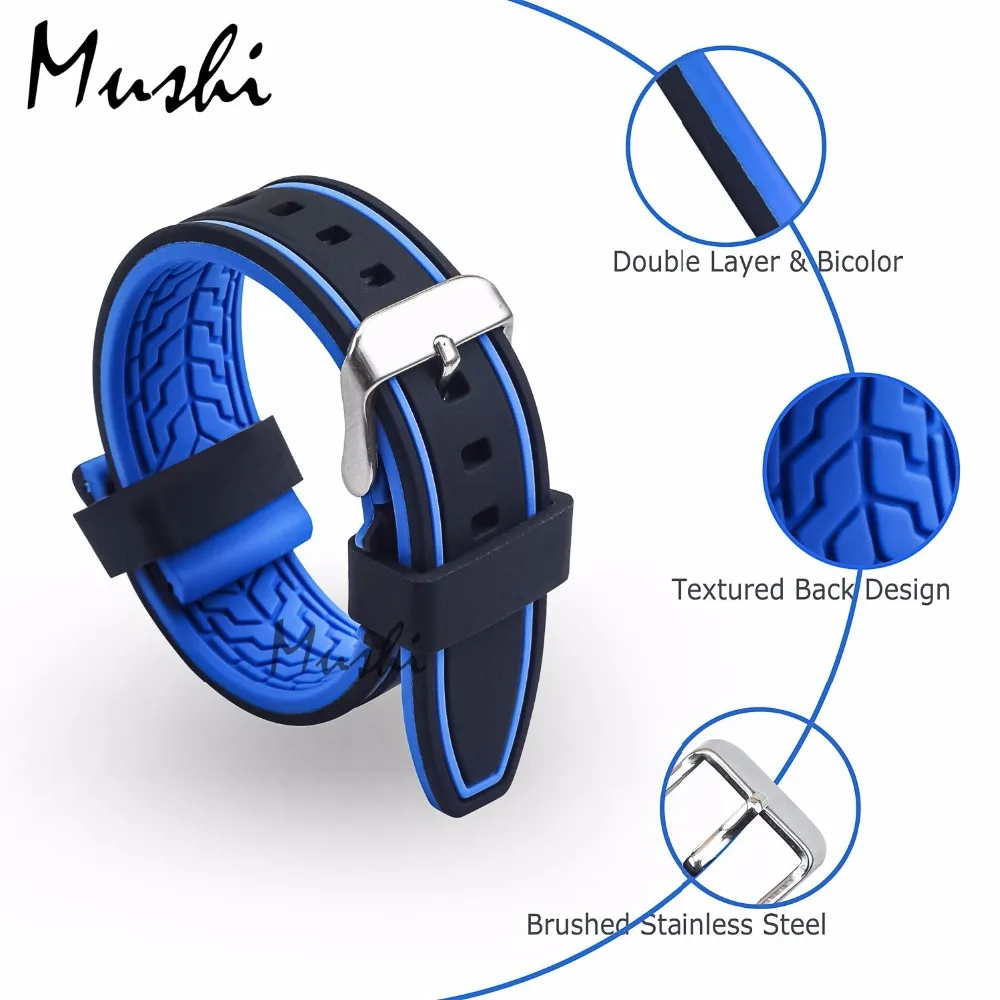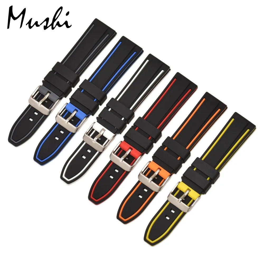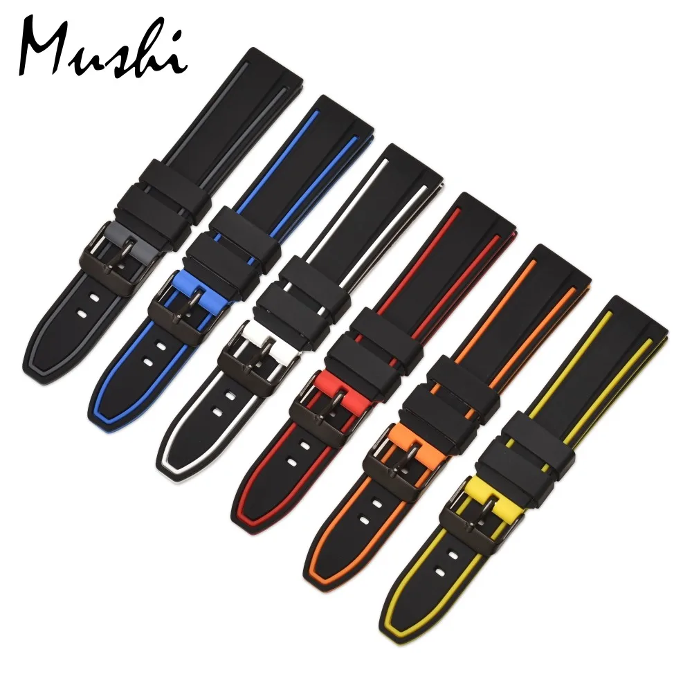 MS силиконовый ремешок для часов черный дайвер ремешок для часов резиновый ремешок для часов с матовой пряжкой из нержавеющей стали застежка 20 мм-26 мм ремешок для часов