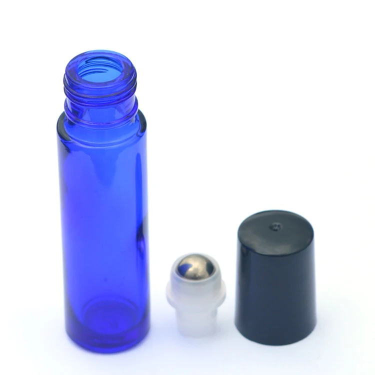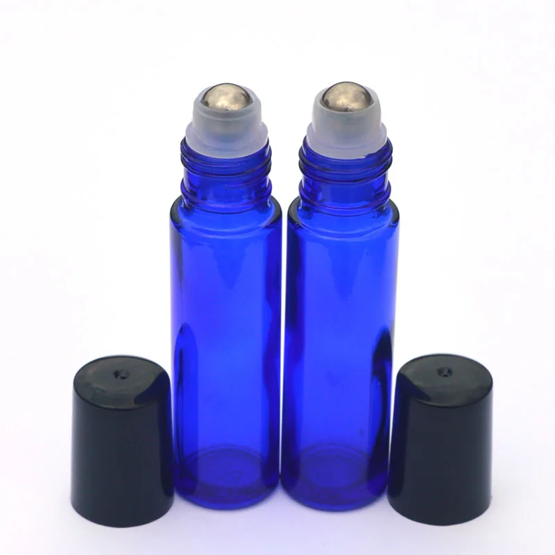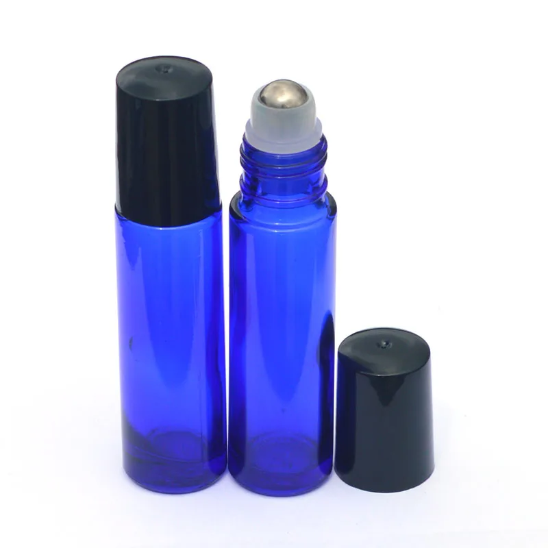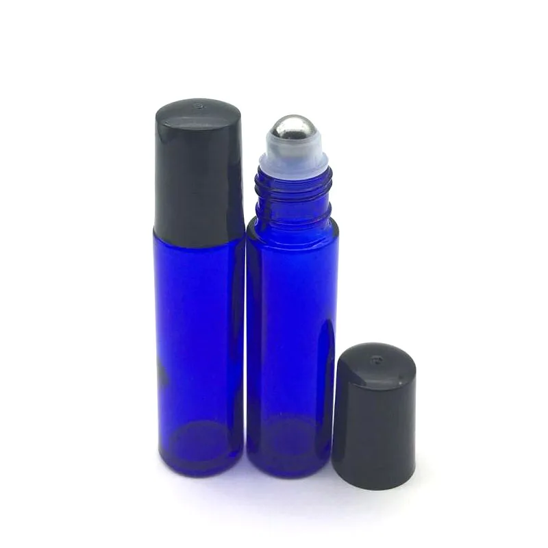 10 мл синие стеклянные бутылочки с роликом пустой аромат Парфюмерия Эфирное масло бутылка 10 мл рулон черный пластиковый колпачок бутылка