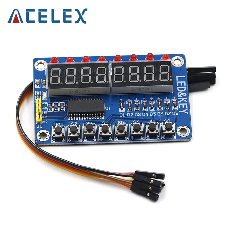 Светодиодный дисплей TM1638, 8-битный модуль для цифровой трубки AYR, 7-сегментный 8-битный Красный дисплей TM1638 с кнопкой 0,36 дюйма, панель светодиодный платы