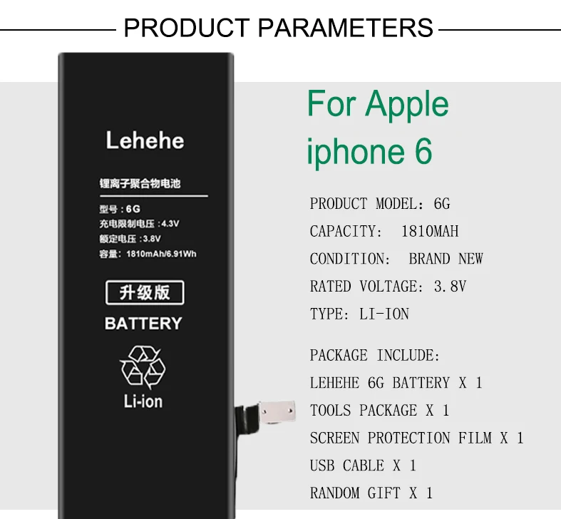 Новинка 100% оригинальный аккумулятор LEHEHE для iphone 6 6G 1810 мАч Высококачественный аккумулятор 0 циклов гарантия на год Замена бесплатных инструментов подарки