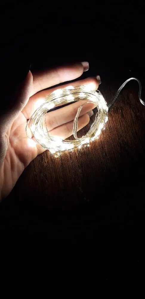очень классная гирлянда, быстрая доставка (в Харьков чуть более двух недель) приехала в маленьком пакетике, на фото гирлянда 5метров, заказывала две 5м и 2 м. Светит достаточно ярко, я не ожидала такого яркого свечения, проводки можно крутить ломать, тонкая проволока но вызывает доверие. Осталось лишь придумать как их использовать