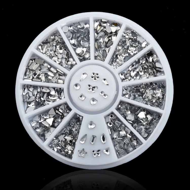 1 коробка, Стразы для ногтей, наклейки для ногтей, 3D дизайн ногтей, украшения серебристого цвета, шпильки для ногтей, маникюр-35