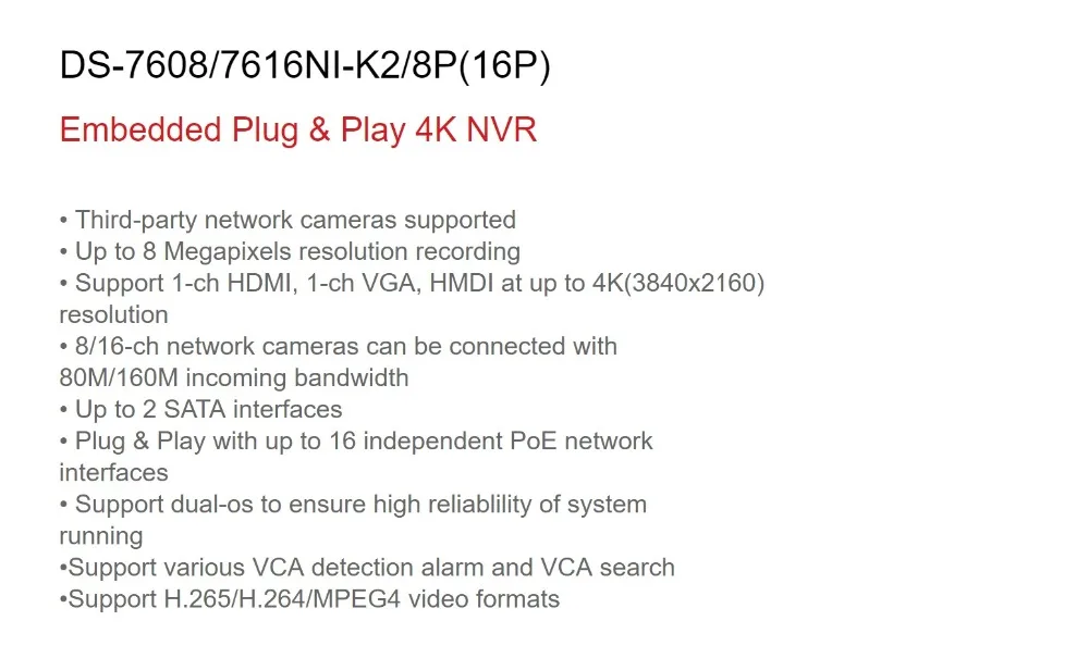Если вы выбираете 16CH, мы вышлем DS-7616NI-K2/16P , 16CH 16POE 2SATA