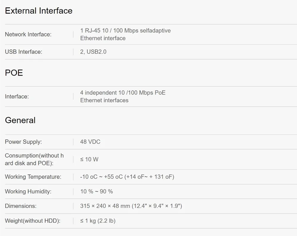 Номер моделиDS-7604NI-K1/4P / DS-7608NI-K2/8P / DS-7616NI-K2/16P