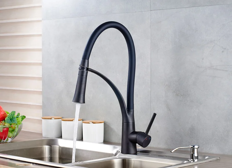 Матовый черный смеситель для кухонной раковины выдвижной поворотный излив смеситель для кухонной раковины для ванной комнаты Смесители для горячей и холодной воды