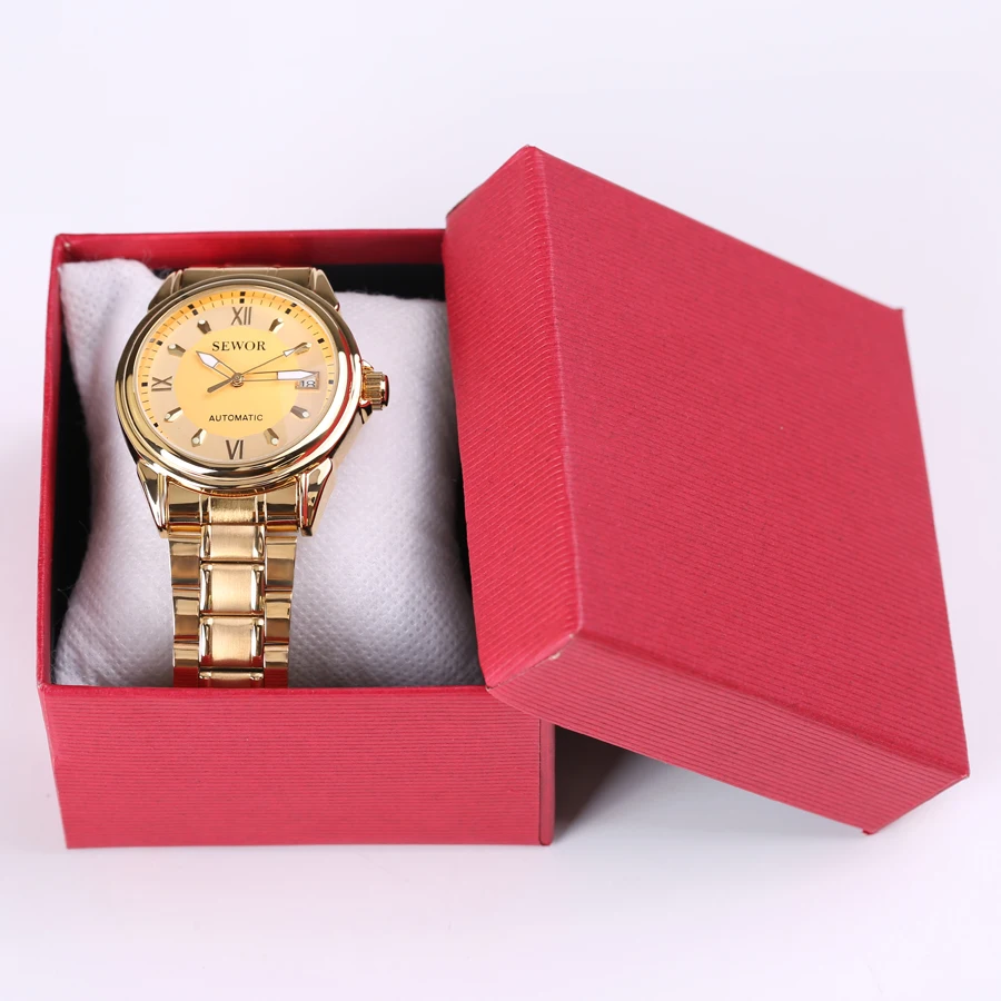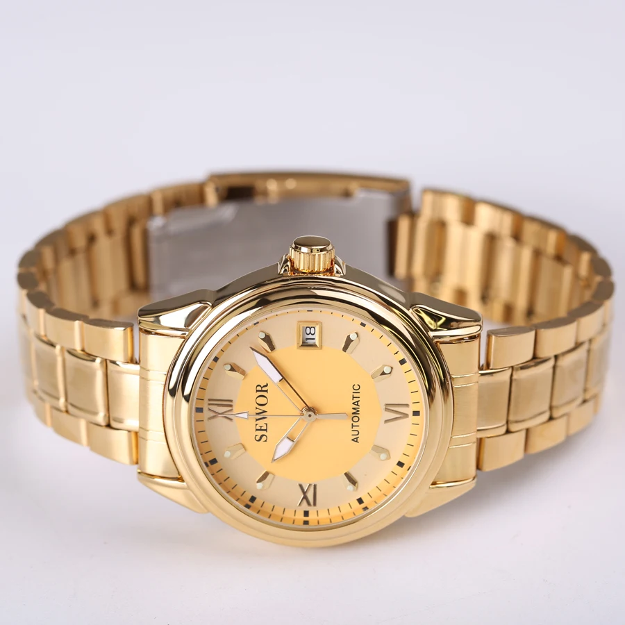 SEWOR золотой чехол класса люкс Для мужчин Рим Количество Дисплей механические часы с золотым циферблатом с ремешком из нержавеющей стали Мужской Повседневное часы 2021