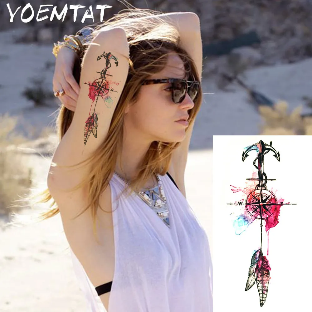 Временная тату-наклейка, черная, белая, с компасом и стрелами, 1 шт.