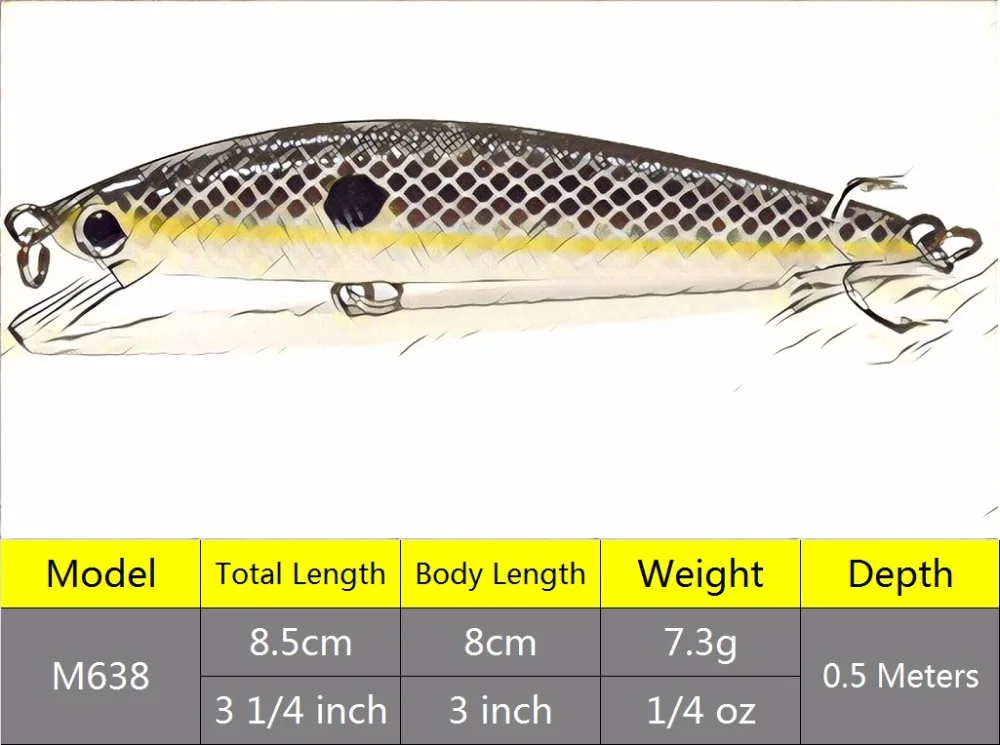 Кренкбейт wLure M638, 8,5 см, 7,3 г, 2 шарика, для переноса веса, 2 размера, 8 крючков