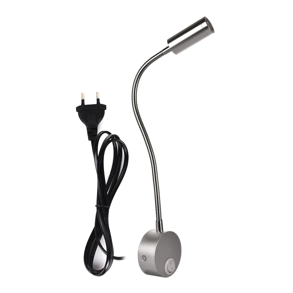 Настенные светодиодные светильники с выключателем, Современная Гибкая прикроватная лампа для спальни для чтения с вилкой европейского и американского стандарта, 3 Вт, черного и серебристого цвета