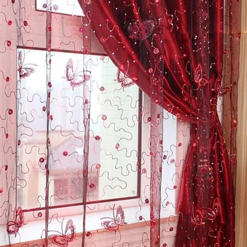 Шторы "Бабочки" тюль rlinds Радужная красная вуаль для кафе кружевная занавеска Тюль с пайетками занавески для детей 3D бабочка WP344B