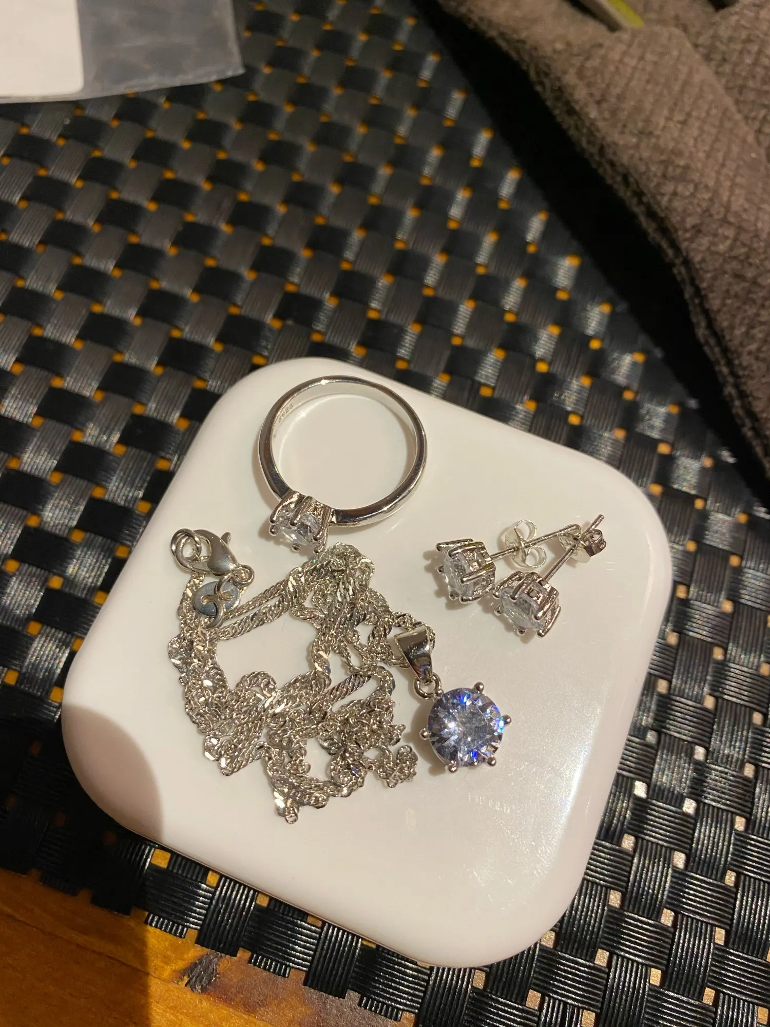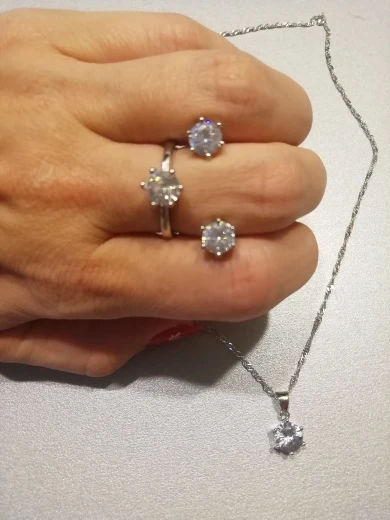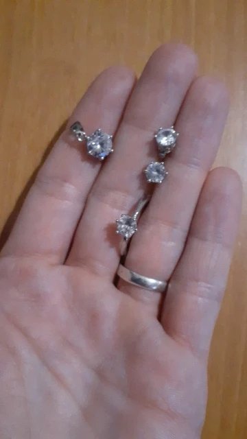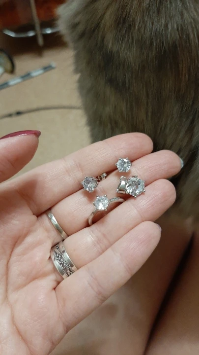 Заказывала комплект из серебра 925 пробы. В комплекте должно было быть: кольцо, цепочка с брелком, и серьги. Должно было придти 29 января - 9 февраля. Пришло 18-19 числа, что радует. Пришла забирать и увидела, что всё хорошо упаковано было. Когда принесла домой комплект целый, не открытый. Когда открыла, там было хорошо всё упаковано. Ничего не повреждено всё в целостности. Когда открыла смогла сделать вывод, что всё так же как и на картинке. По внешнему вижу приличный, по качеству не знаю, недавно одела ✌️