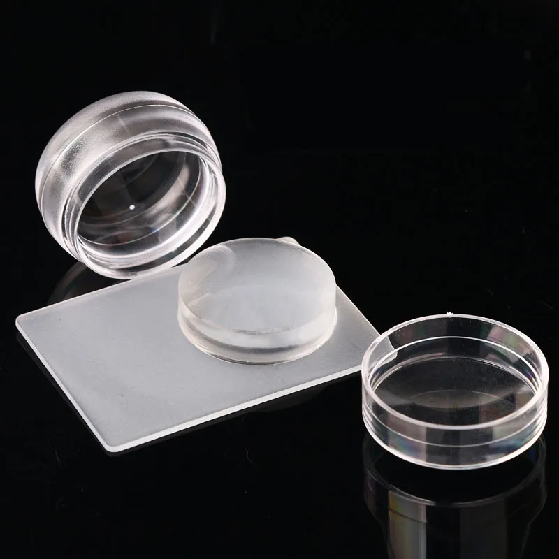Прозрачный силиконовый штамп 3,5 см с шапкой, шахматный дизайн, штамп и скребок для ногтей