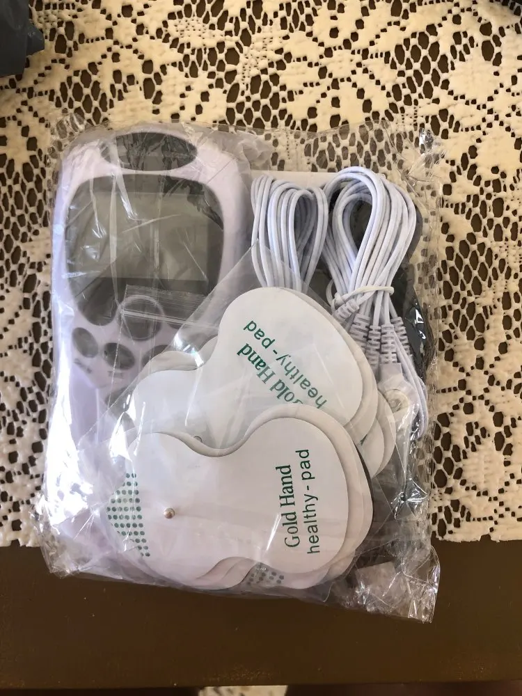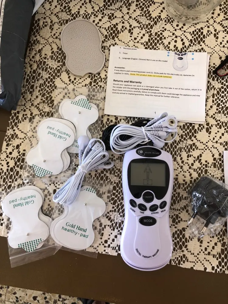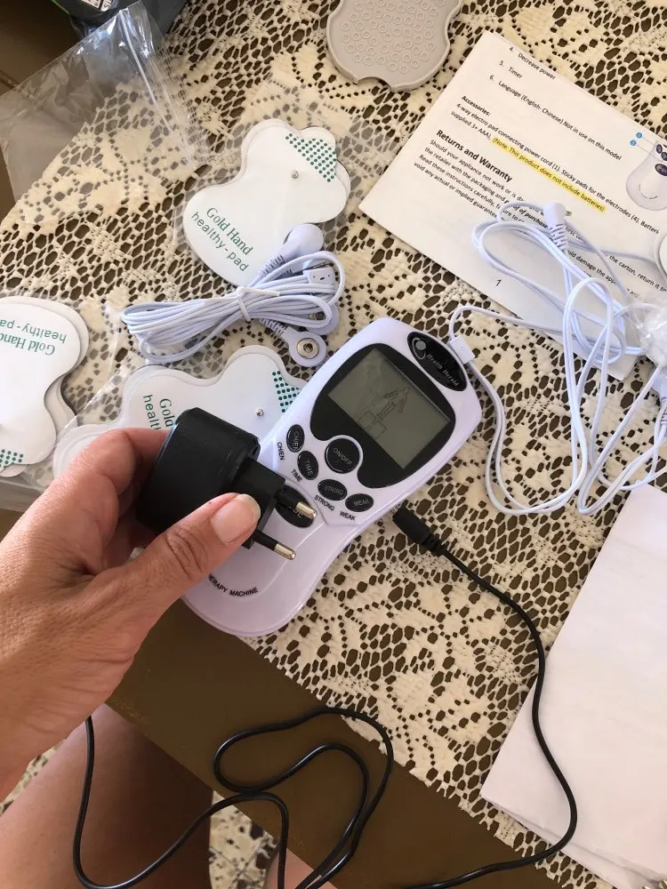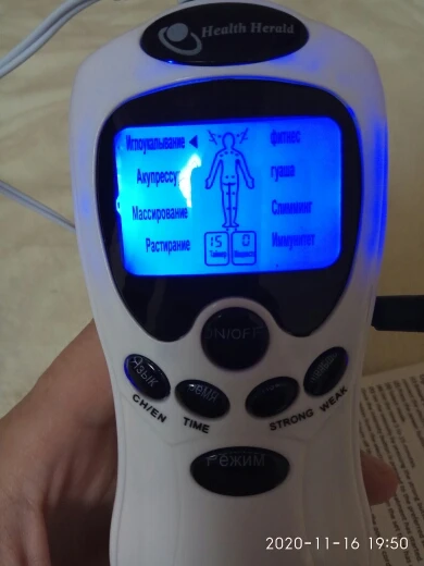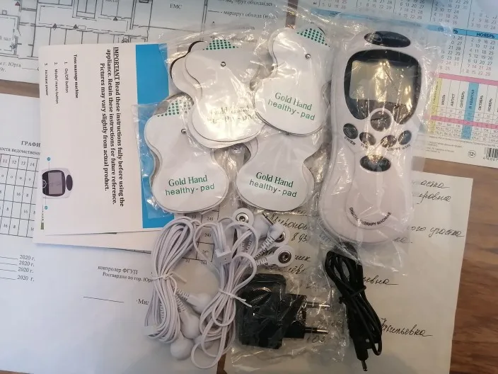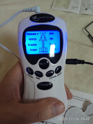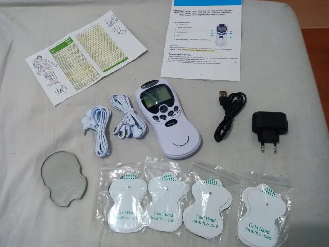 Пришел быстро, упаковано в мягкий конверт, но все целое. инструкция только на английском, долго разбиралась как заставить его работать :) после установки параметров начать прибавлять мощность (кнопка strong). по силе воздействия слабый, но если попадает на нерв, "дергает" прилично. не работает, если из 4 аппликаторов подключены только 2, надо полностью.
