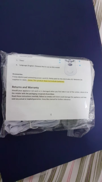 Я получил сегодня, несмотря на аккуратную упаковку, черное переднее окно сломалось, но оно не беспокоило использование так несерьезно. Я протестировал все программы, и я доволен, электроды содержат много замораживания. Я рекомендую товар. Спасибо вам