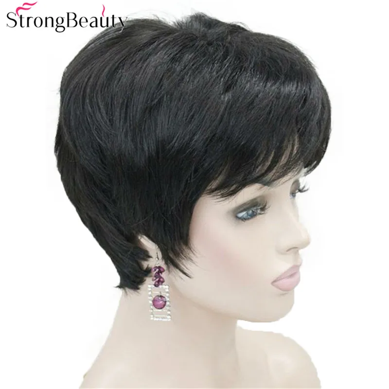 Сильная красота короткие Синтетические прямые парики термостойкие черные волосы для женщин