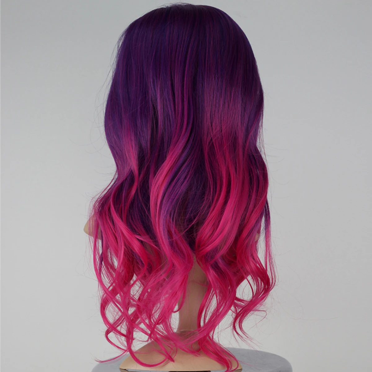 Женские синтетические длинные волнистые волосы Miss U, фиолетовые, смешанные, розовые, черные, красные, синие волосы с эффектом омбре, парик для косплея из фильма Хэллоуин