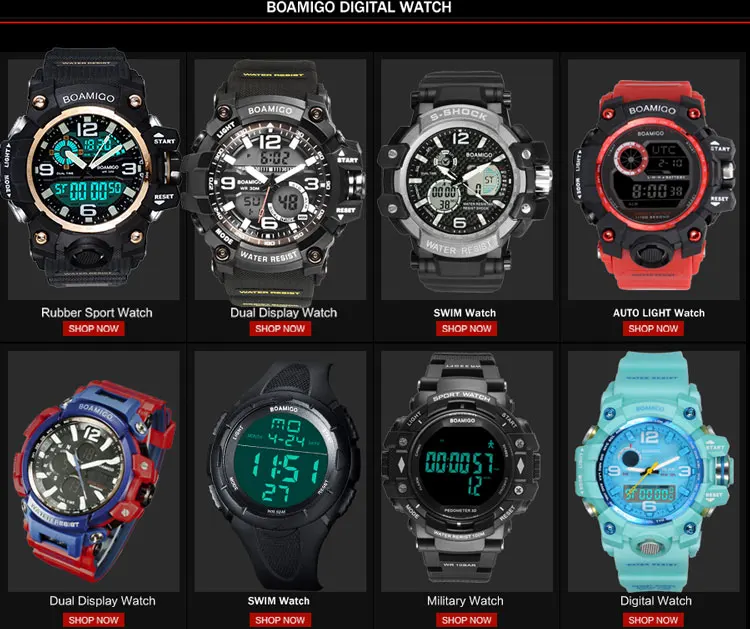 Хорошие новости1. Прямая поставка, оптовая продажа приветствуются. Мы можем осуществить бесплатную доставку службой dhl express, если ваш заказ превышает 300 долларов США.2. Если вам нужны детали наших продуктов и фотографии и оптовая цена, пожалуйста, свяжитесь с нами.Ключевые точки:1. Функция: будильник, секундомер, хронограф, светодиодный светильник, дата, неделя, месяц2. Тип: мужские спортивные часы3. Часовой механизм: цифровые часы4. Материал ремешка: пластик5. Водонепроницаемость 50 м (вы можете плавать с ним в холодной воде, но не позволяйте нажимать любую клавишу под водой)6. Показывает точное время7. Это лучшие подарки на Рождество, Новый Год, день рождения и так далееХарактеристика:Чехол диаметр: 4,7 см окЧехол Толщина: 1,5 смЧехол: пластикДлина ремешка: около 26 смЧасы weigth:55gМатериал ремешка: пластикКакая посылка1 часыБренд StoryЧасы бренда BOAMIGO состоят из обновленных классических часов для более модного потребителя.Часы разработаны с большими чехлами, специальной и спортивной кожей, резиновыми или металлическими ремешками, чтобы создать свежий вид.И наши часы сочетают в себе качество, передовую моду, дух спорта и ценность.А также модная и повседневная одежда для повседневного ношения. Наши часы всегда с хорошей стоимостью, но недорогой ценой.Добро пожаловать к любому клиенту, чтобы насладиться нашими часами и стать более модным.