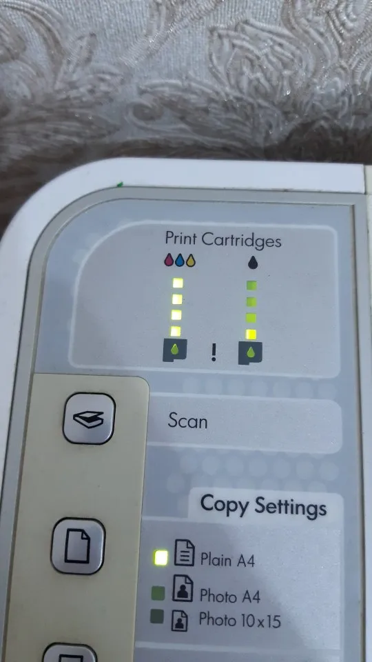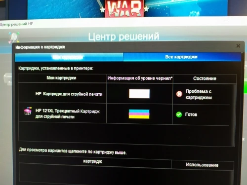 Чёрный картридж встал нормально, а вот на цветной ругается неправильно вставлен картридж. Но печатает. Продавец на сообщения не отвечает.