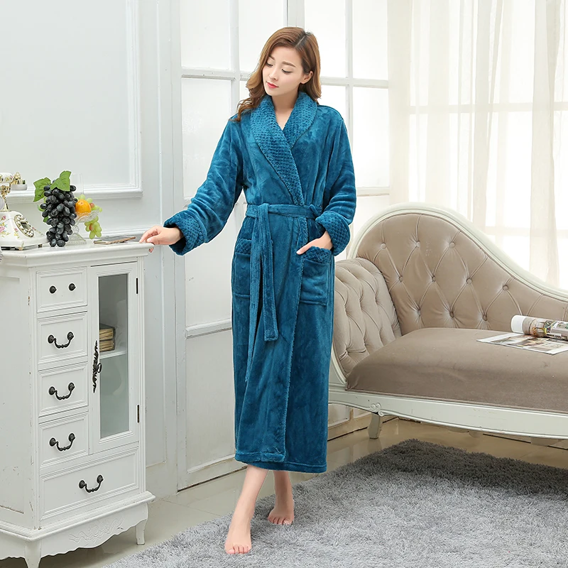 Женский фланелевый Халат, длинный теплый банный халат до середины икры, с длинным рукавом, кимоно, халат для невесты, халат для подружки невесты