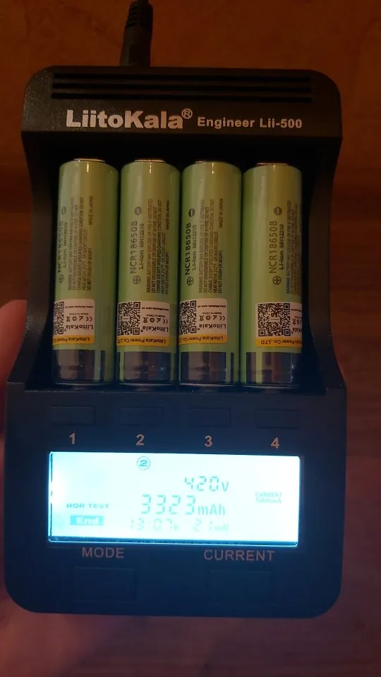 Доставка до Челябинска чуть больше месяца. Аккумуляторы отличные. Вольтаж у всех 3.7V. Ток 0.12 A. Почти разряженные. Поставил на зарядку.