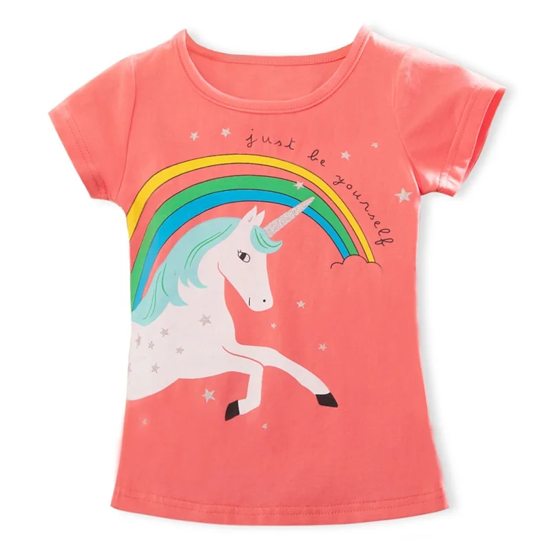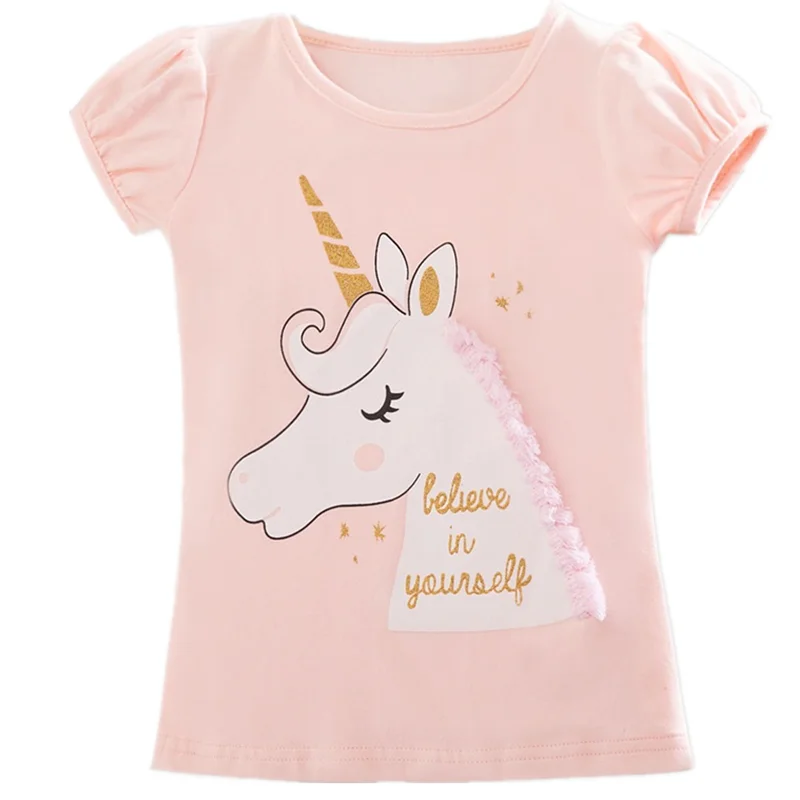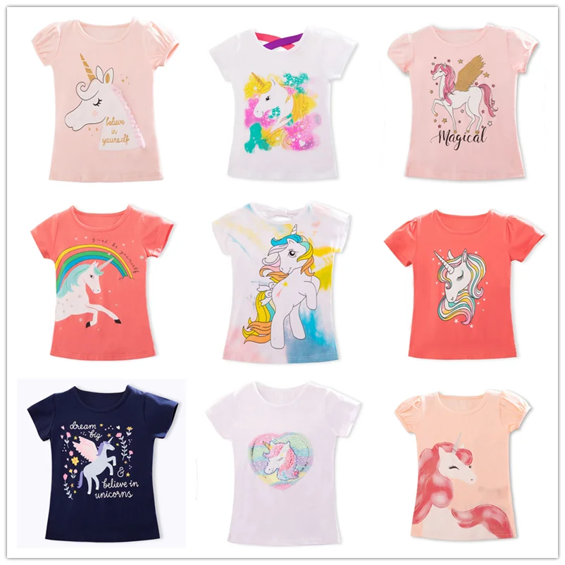 Летняя футболка с рукавом, футболка для девочек с крышками, единоро...
