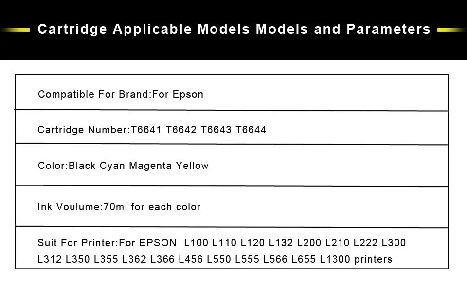 Набор чернил для заправки принтеров Epson L100, L110, L120, L132, L210, L222, L300, L312, L355, L350, L362, L366, L550, L555, 4 цвета