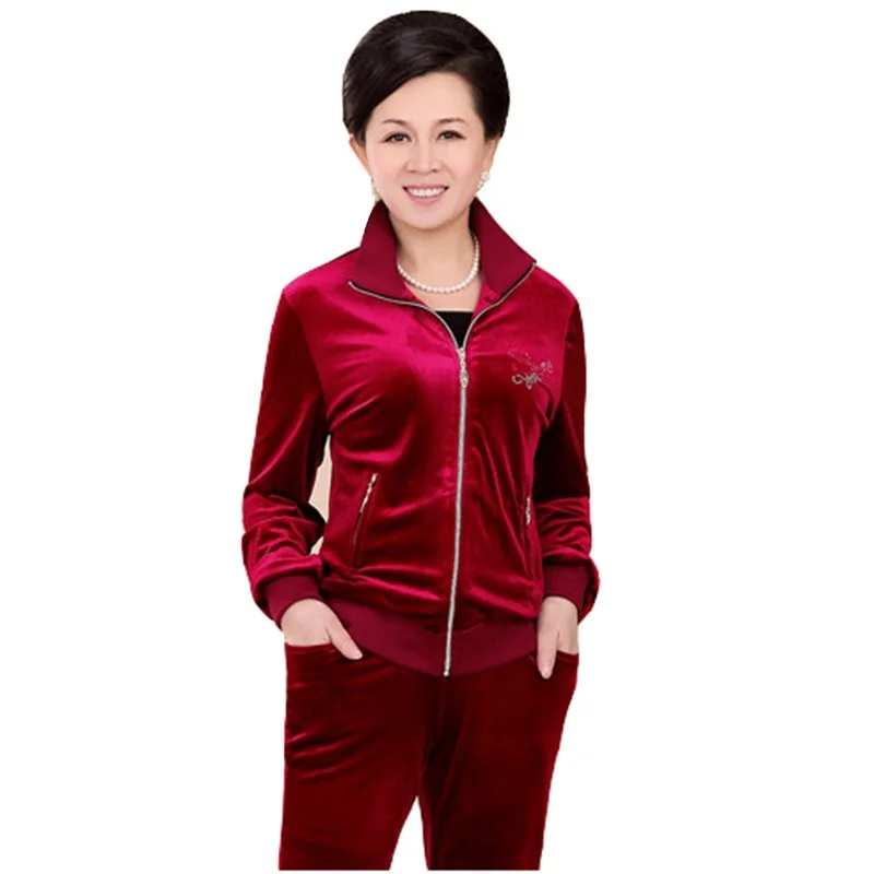 Женский Бархатный спортивный костюм, костюм из двух предметов, пальто и брюки для матери и костюмы Длинные рукава среднего возраста, весна-осень 173