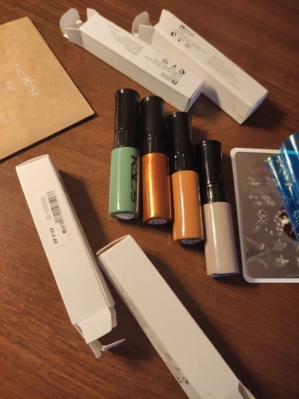 Bardzo szybka dostawa, lakiery zgodne z opisem, ładne kolory. Jeszcze nie używałam ale sądząc po ilości zamówień i poleceniach na YouTube, na pewno było warto je zamówić ;)
