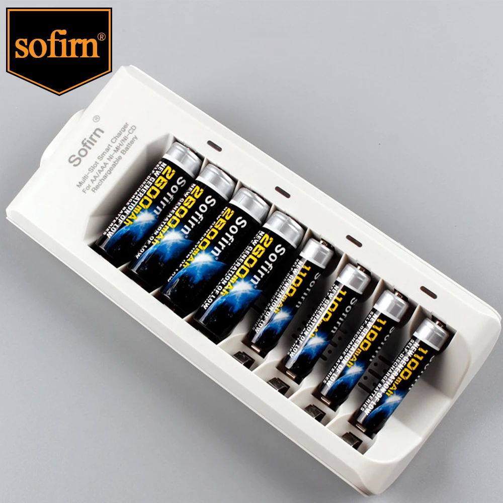 Умное зарядное устройство Sofirn с 8 слотами для аккумуляторов, зарядка с индикасветильник для NiMHNiCd аккумуляторных батарей AAAAA, вилка стандарта СШАЕС, без аккумулятора