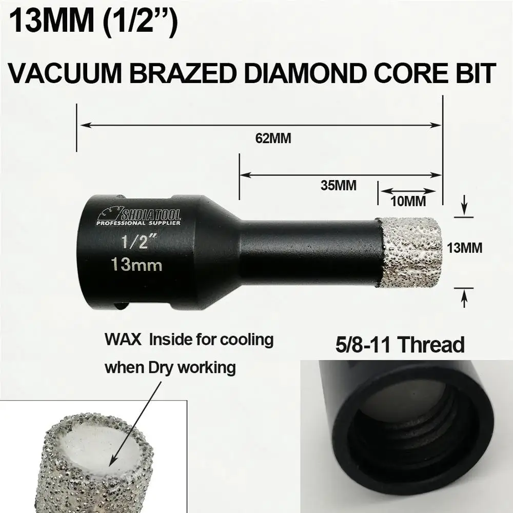 Diatool 2 шт. 12 "ВАКУУМНОЙ ПАЙКИ DIAMOND сухой бурения биты с 58-11 соединение сверла Диаметр 13 мм для фарфор Гранит