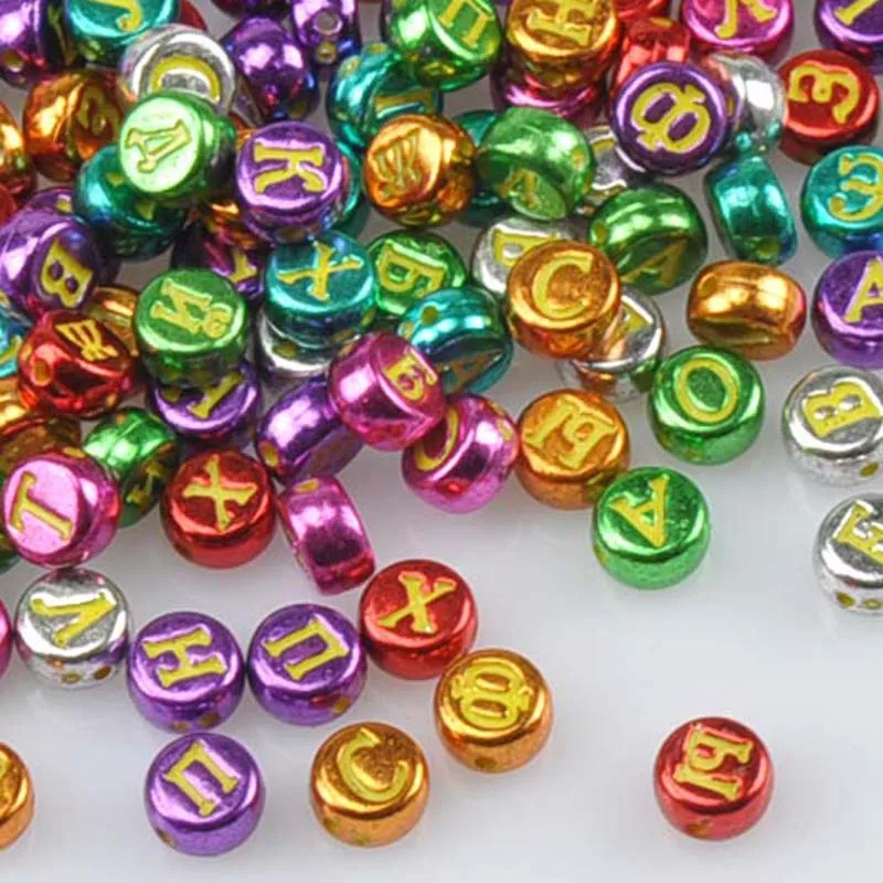 Плоские круглые бусины YKL0533X, 200 шт., разноцветные акриловые бусины буква русского алфавита для изготовления ювелирных изделий, 7x4 мм
