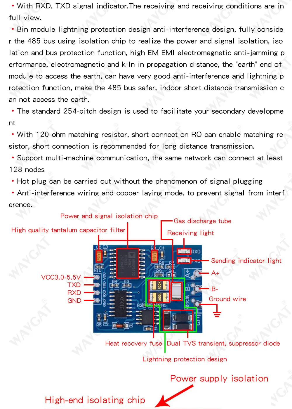 Хорошая платка. Линия 485 достаточно устойчива к перегрузкам и перенапряжению. Хороший товар.