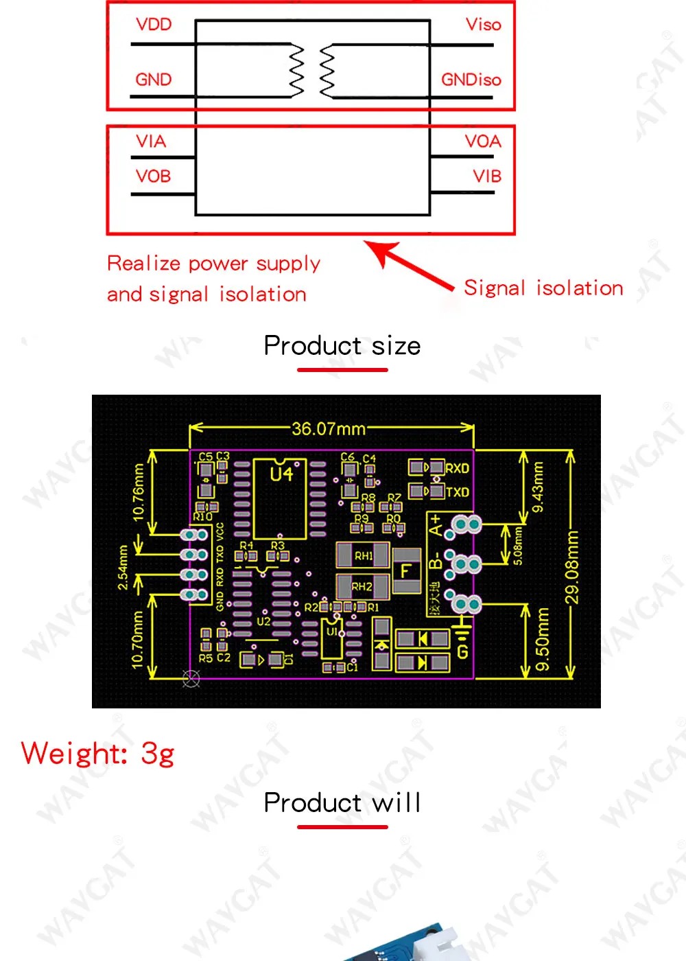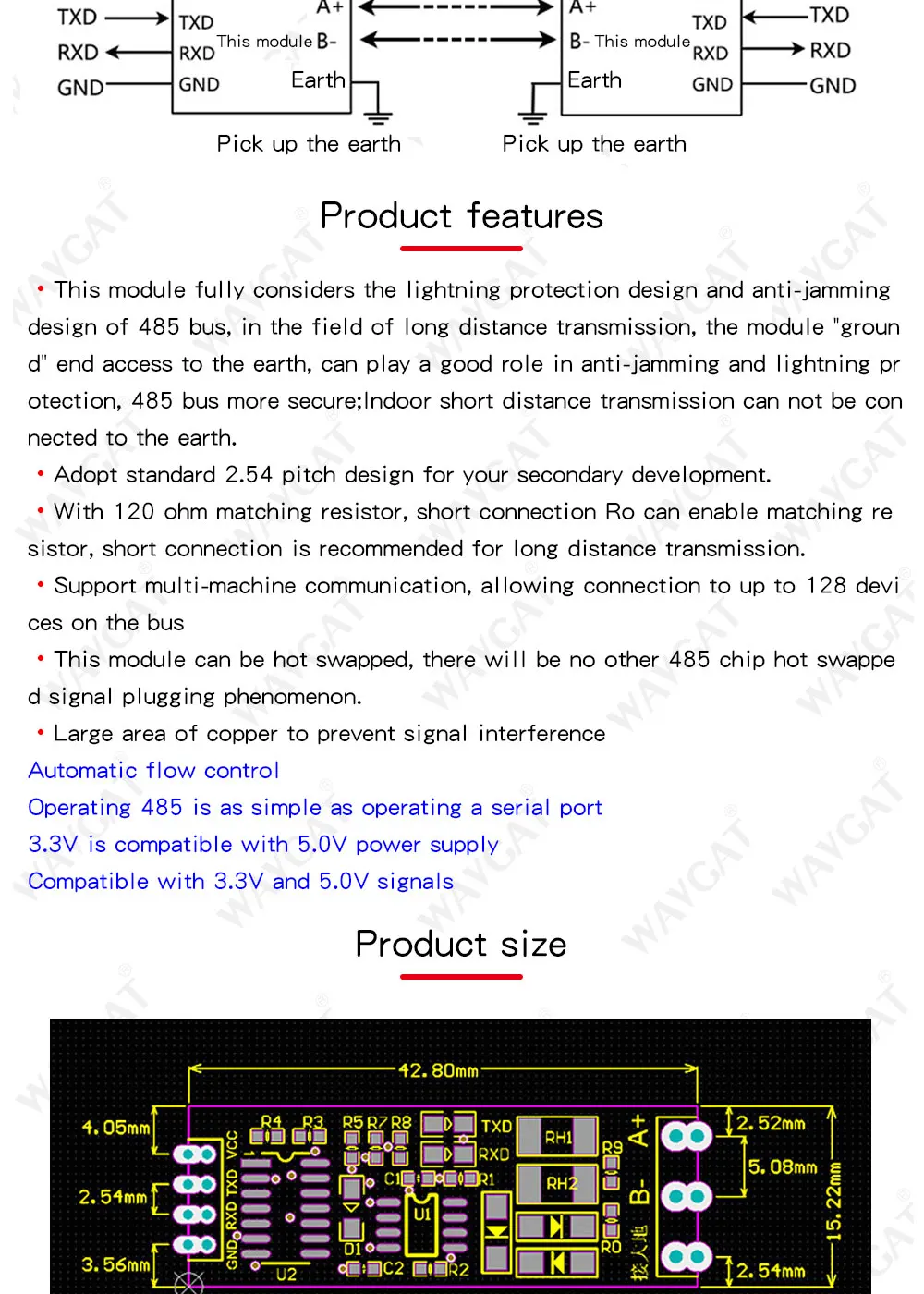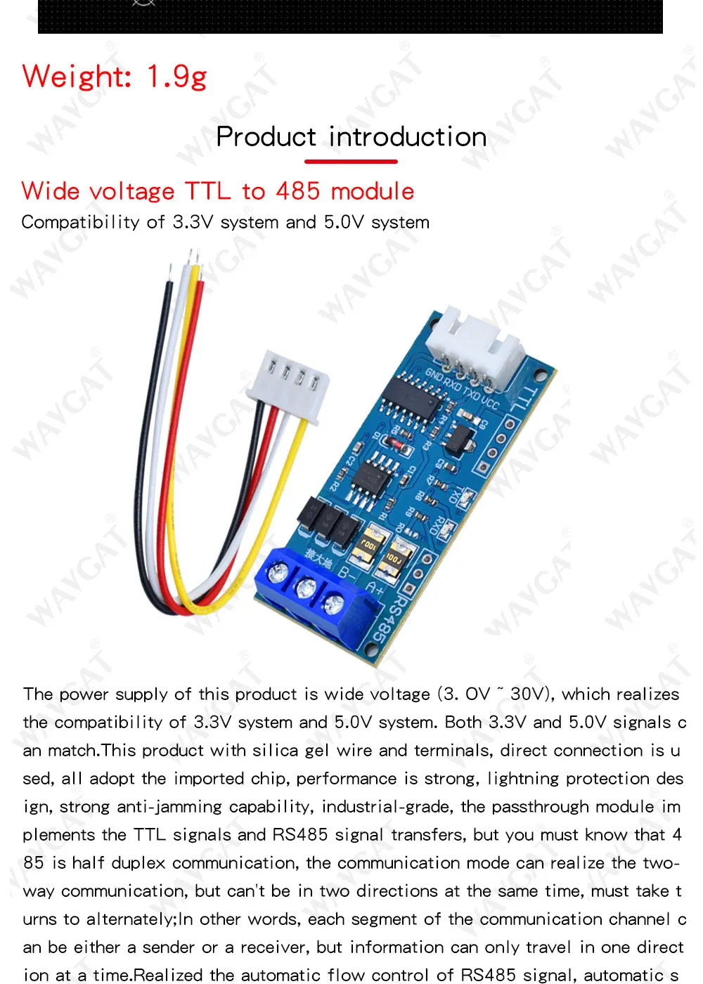 Модуль TTL с поворотом на RS485, аппаратный модуль автоматического управления потоком, последовательный уровень UART, модуль источника питания с взаимным преобразованием, 3,3 В, 5 В