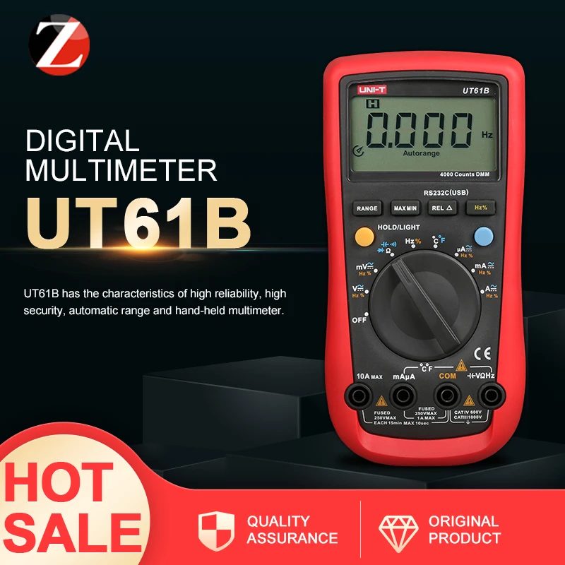 Технические характеристики: Модель: UT61B Напряжение постоянного тока (В): 40 мВ,400mV± (0,8% + 3)/4 в, 40 в, 400 В± (0,5% + 1)/1000 В ±(0.5% + 1)