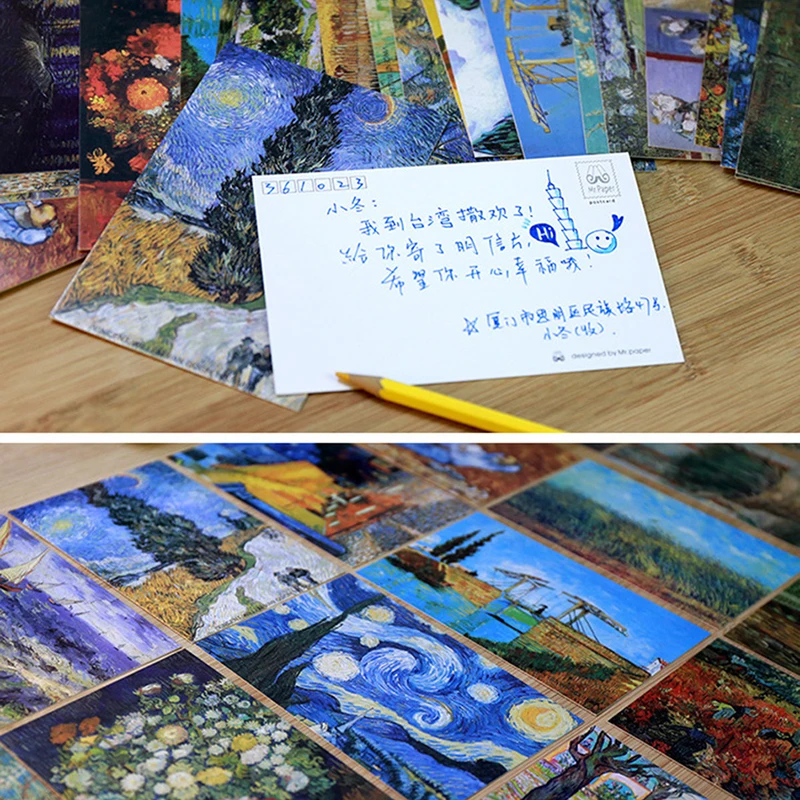 30 листовкоробка, масло Ван Гога, вкладки с живопись, открытки, Винтаж, открытка с желанием, модный подарок