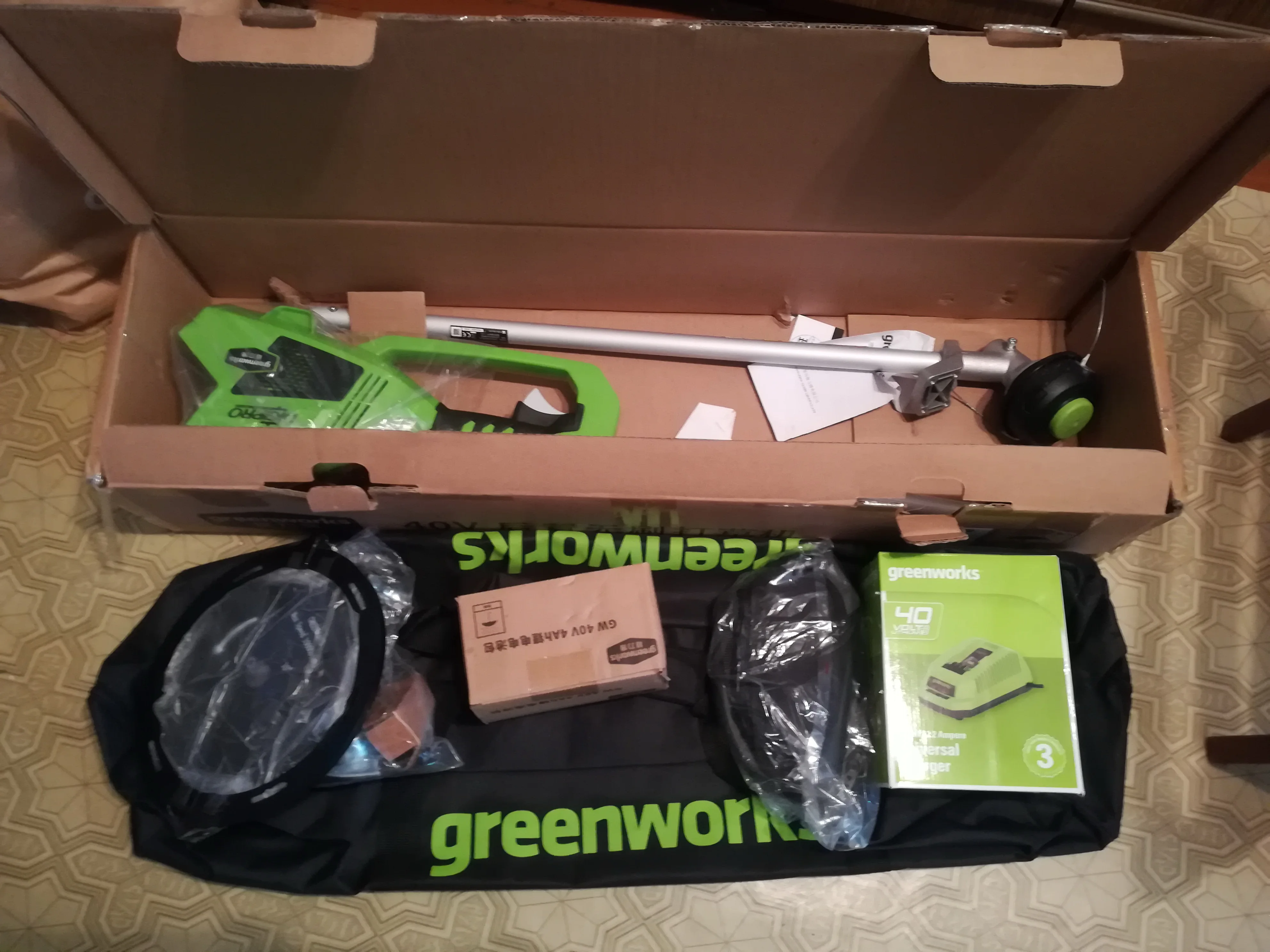 Отличный мощный триммер. Инструкции на русском нет но устройство как и у всех подобных косилок, шума гораздо меньше чем от бензокоса. Из Китая в смол обл за 3 недели.