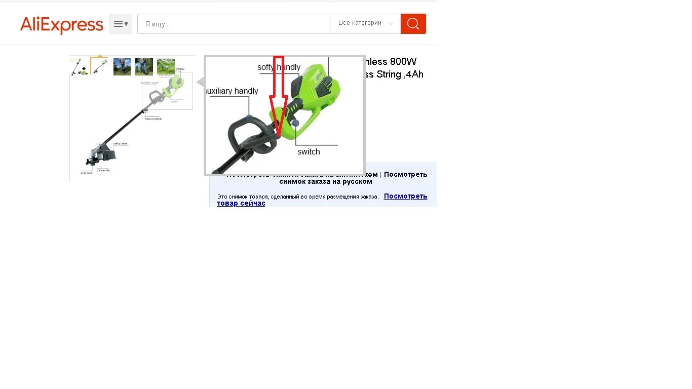 Сервисом и отношением магазина к покупателем не доволен! Удивлен большим количеством звезд. 1. Сорваны сроки доставки из России, вместо 5 дней (300 км от Москвы - 17 дней, у вас доставщики пешком ходят?). После обращения к продавцу скинул ссылку на доставщика и все, помощи ноль разбирайся сам.После настойчивых требований обещали помочь и сообщить. В итоге ТИШИНА. 2. Прислали не комплект . Не положили ручку. Продавец пошел в отказ, якобы она там не идет. Открыл спор. Выиграл. К самому триммеру претензий нет в работе понравился. Аккумулятора хватает на 30-40 минут Продавца не рекомендую. Продукцию данного брэнда буду покупать в других магазинах. Всем удачи! Фото №2 увеличенный скрин с заказа. Фото №3 место на дуге, куда должна крепится ручка.