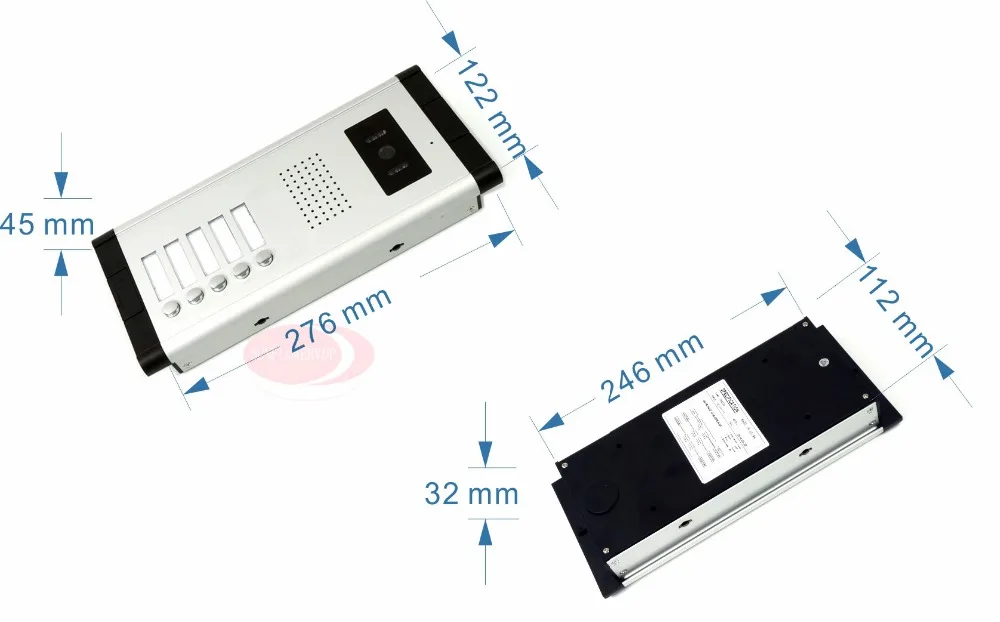 1: микрофон; 2: Инфракрасная трубка; 3: камера; 4: динамик 5: зона номера; 6: кнопка вызова; 7: порт электронного замка 8: Внутренний телефонный интерфейс
