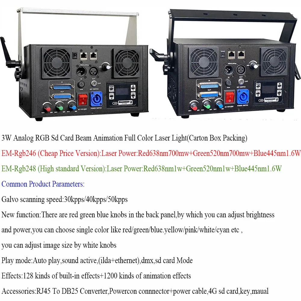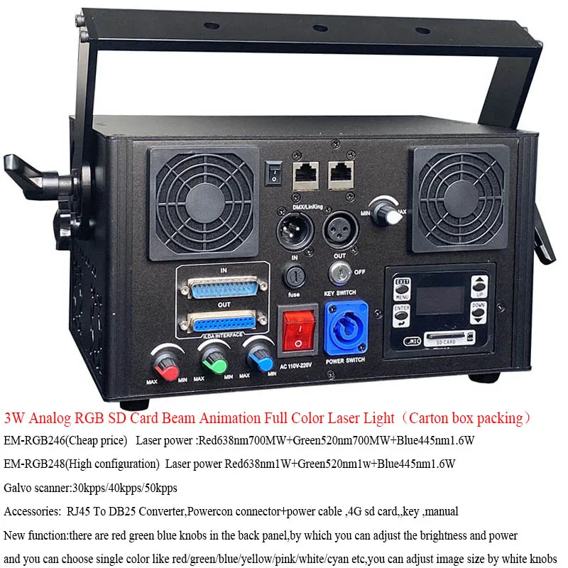 Название продукта (EM-RGB246 248): 3 Вт rgb sd-карта луч анимационный лазер